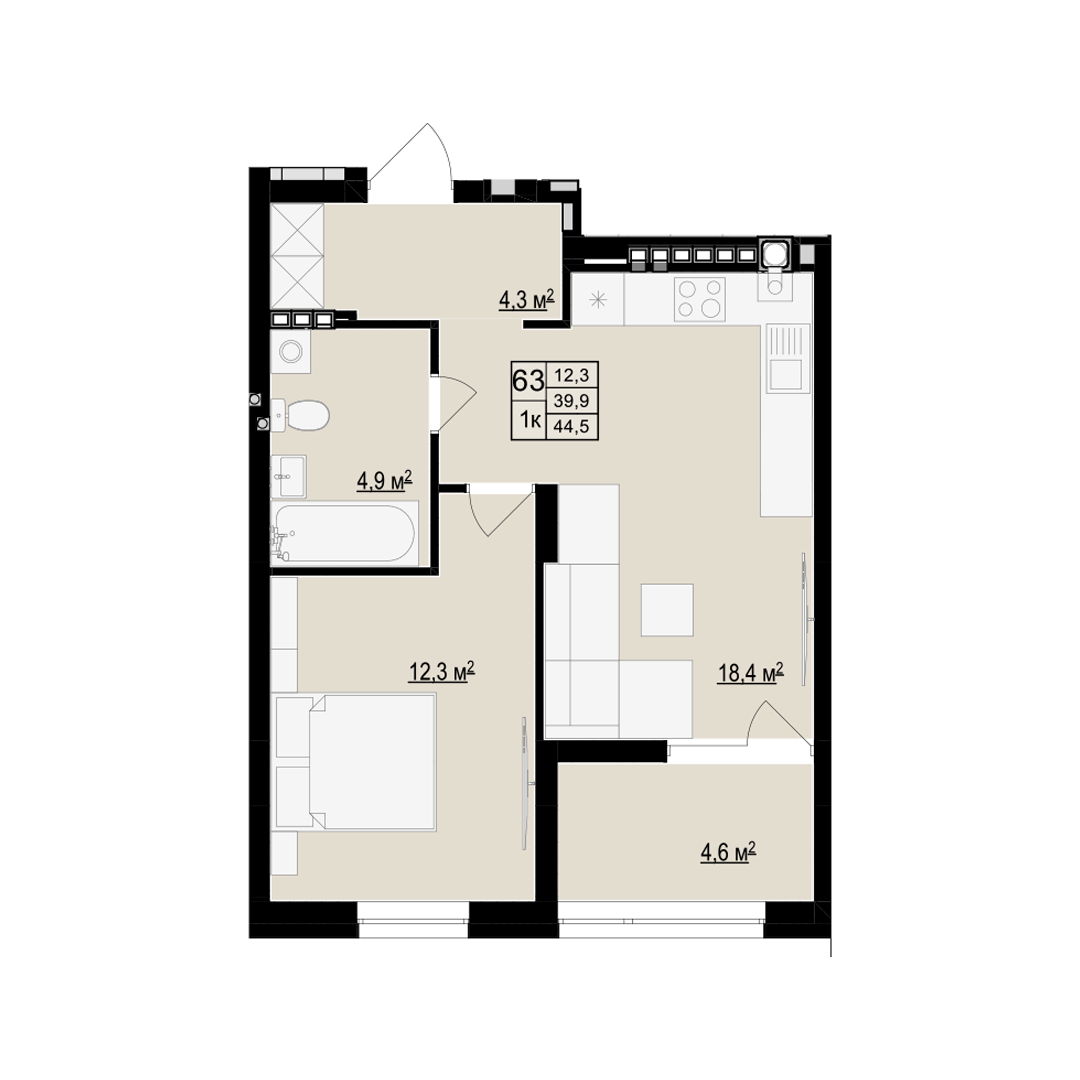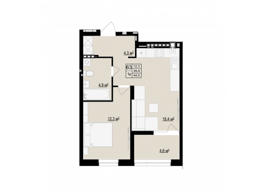 Планування 1-кімнатної квартири в будинку на вул. Бігова, 19 (1 секція) — №63