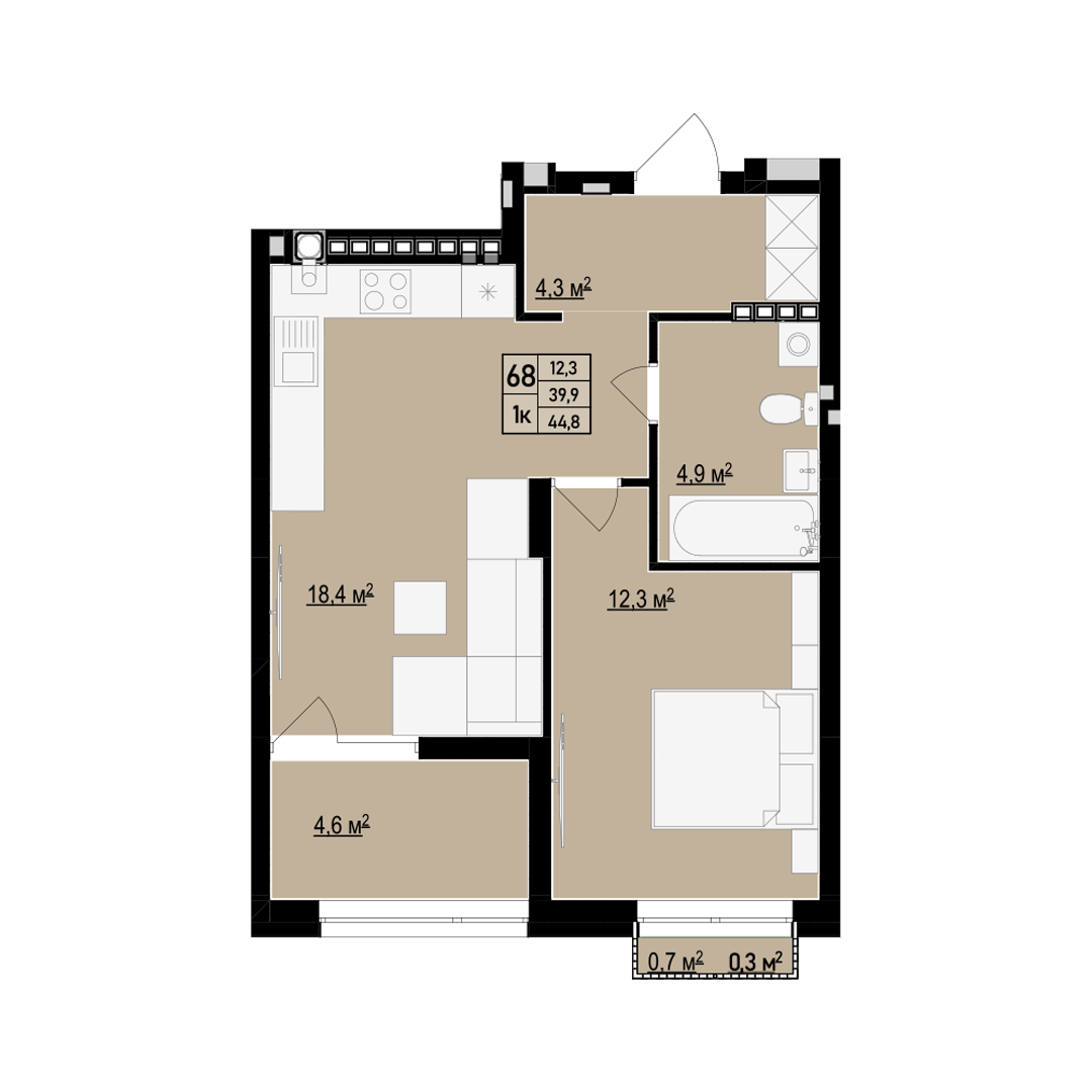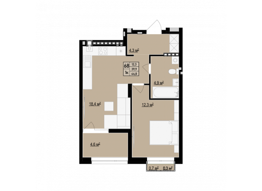 Загальна площа: 44.8 м2