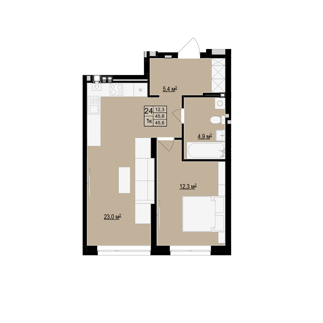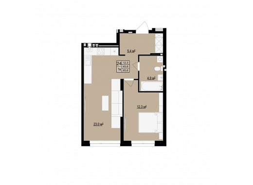 Планування 1-кімнатної квартири в будинку на вул. Бігова, 19 (3 секція) — №24