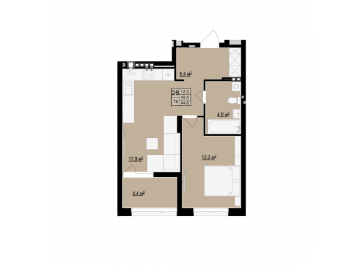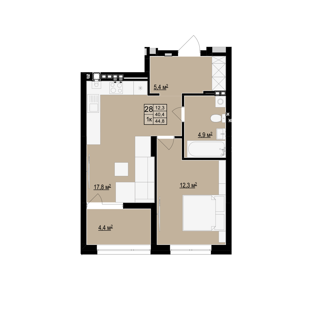 Планування 1-кімнатної квартири в будинку на вул. Бігова, 19 (3 секція) — №28