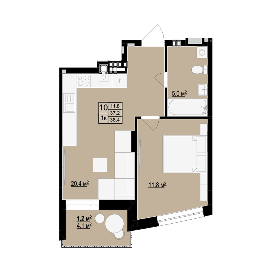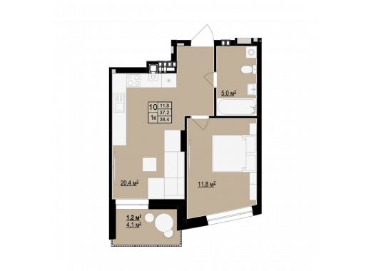 Планування 1-кімнатної квартири в будинку на вул. Бігова, 19 (4 секція) — №10