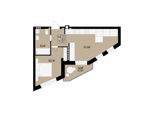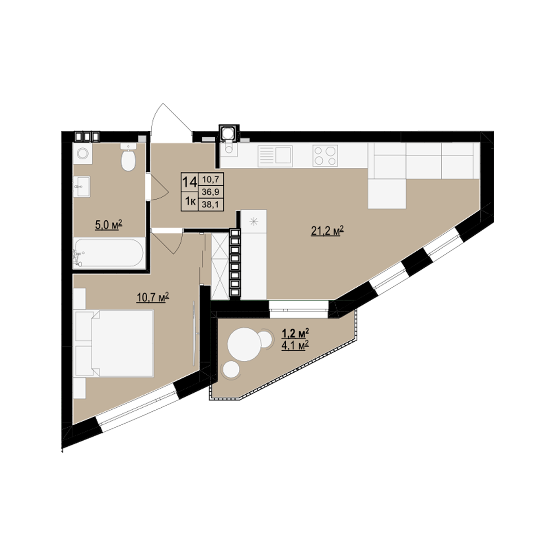 Планування 1-кімнатної квартири в будинку на вул. Бігова, 19 (4 секція) — №14