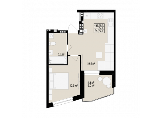 Планування 1-кімнатної квартири в будинку на вул. Бігова, 19 (4 секція) — №15