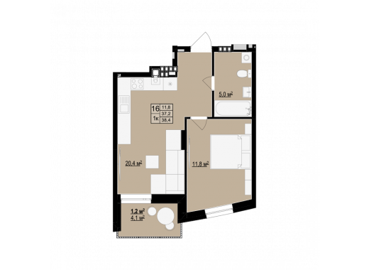 Планування 1-кімнатної квартири в будинку на вул. Бігова, 19 (4 секція) — №16