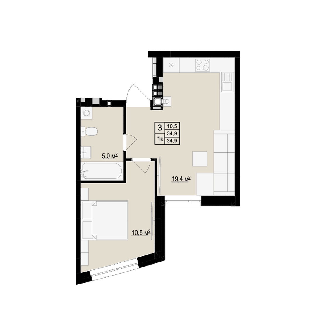 Планування 1-кімнатної квартири в будинку на вул. Бігова, 19 (4 секція) — №3