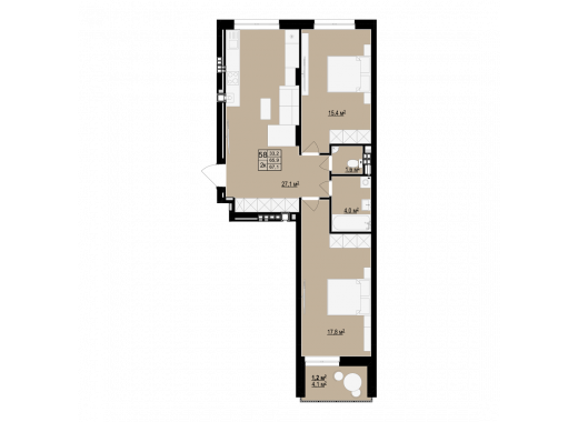 Житлова площа: 27.1 м2