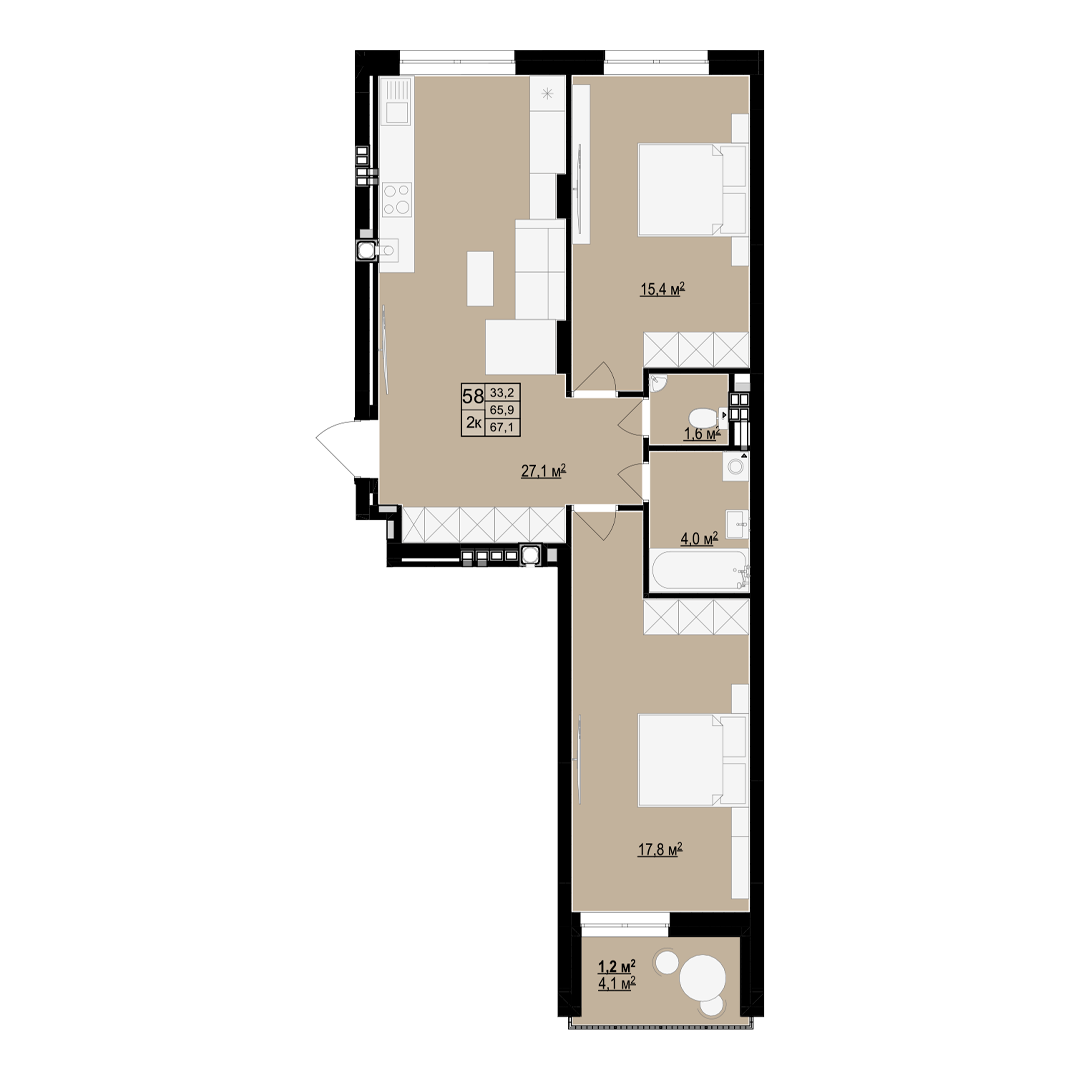 Загальна площа: 67.1 м2