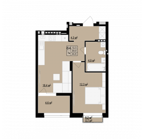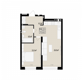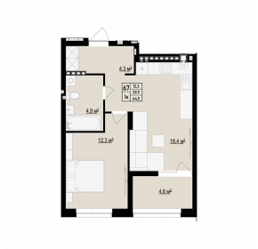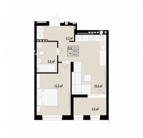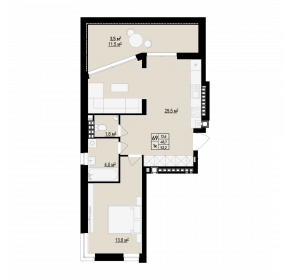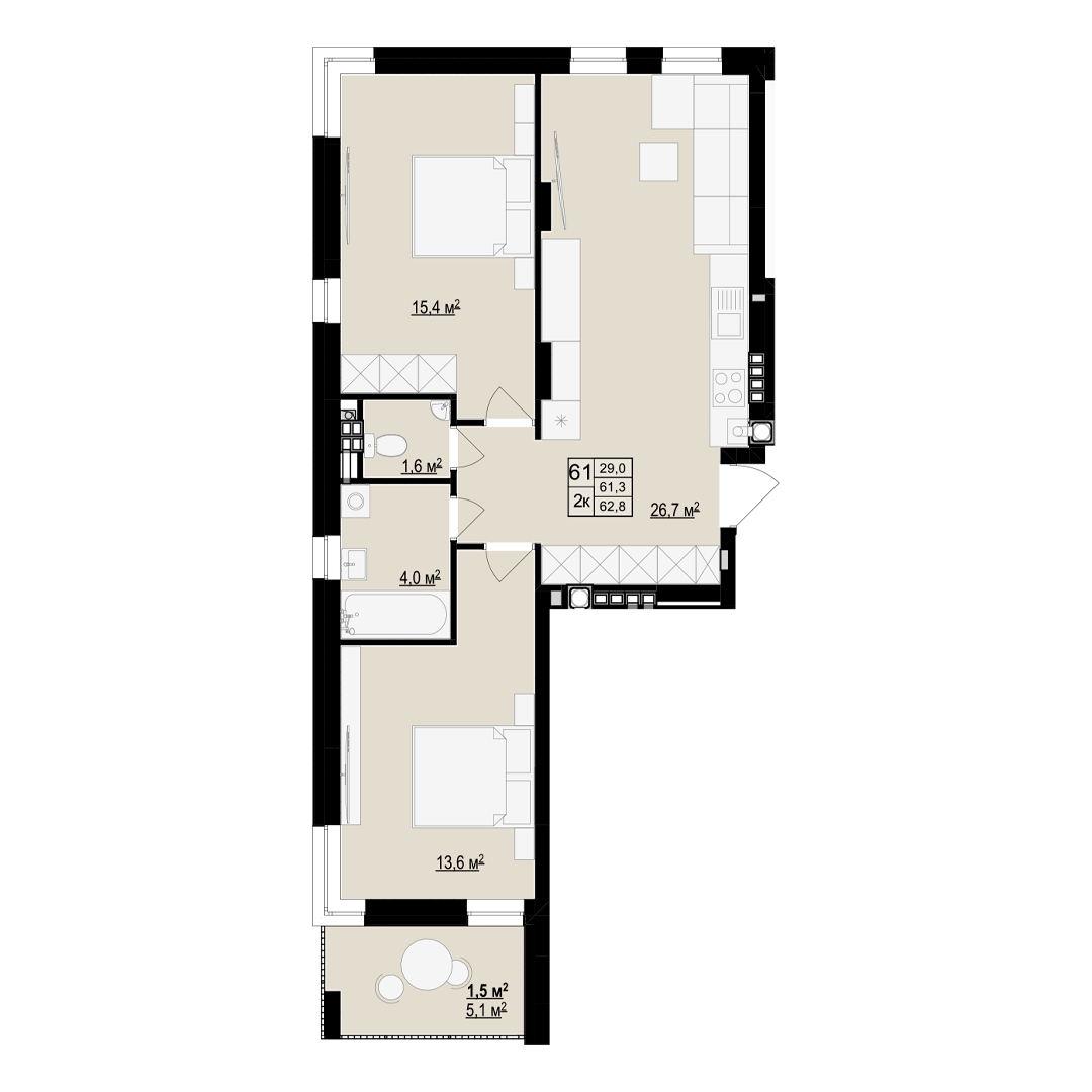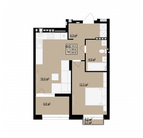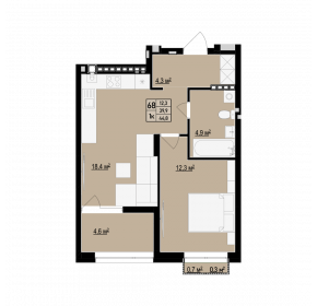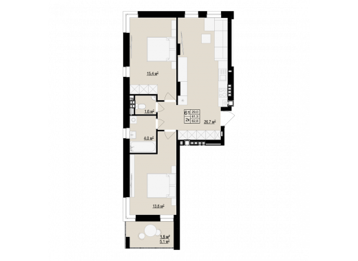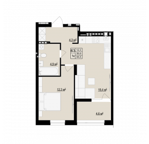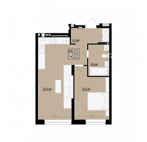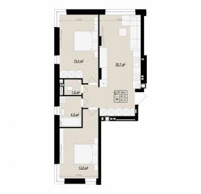 Планування 2-кімнатної квартири в будинку на вул. Бігова, 19 (1 секція) — №61