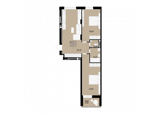Загальна площа: 61.6 м2