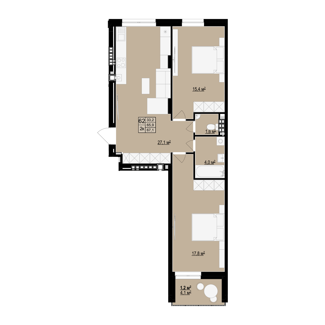Загальна площа: 67.1 м2