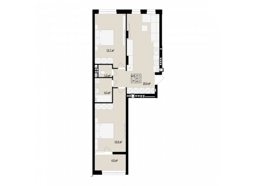 Загальна площа: 61.3 м2