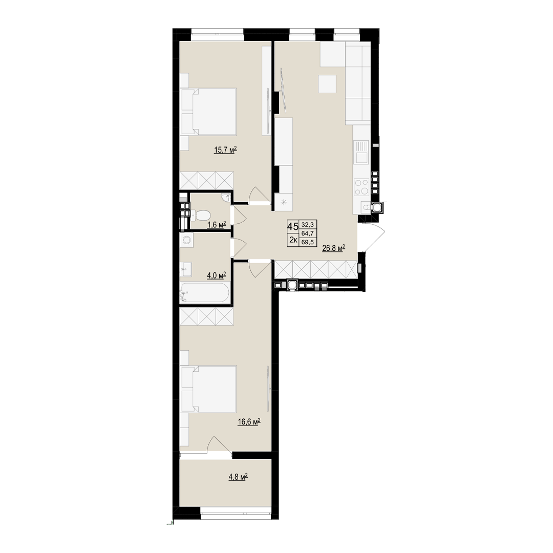 Загальна площа: 44.8 м2