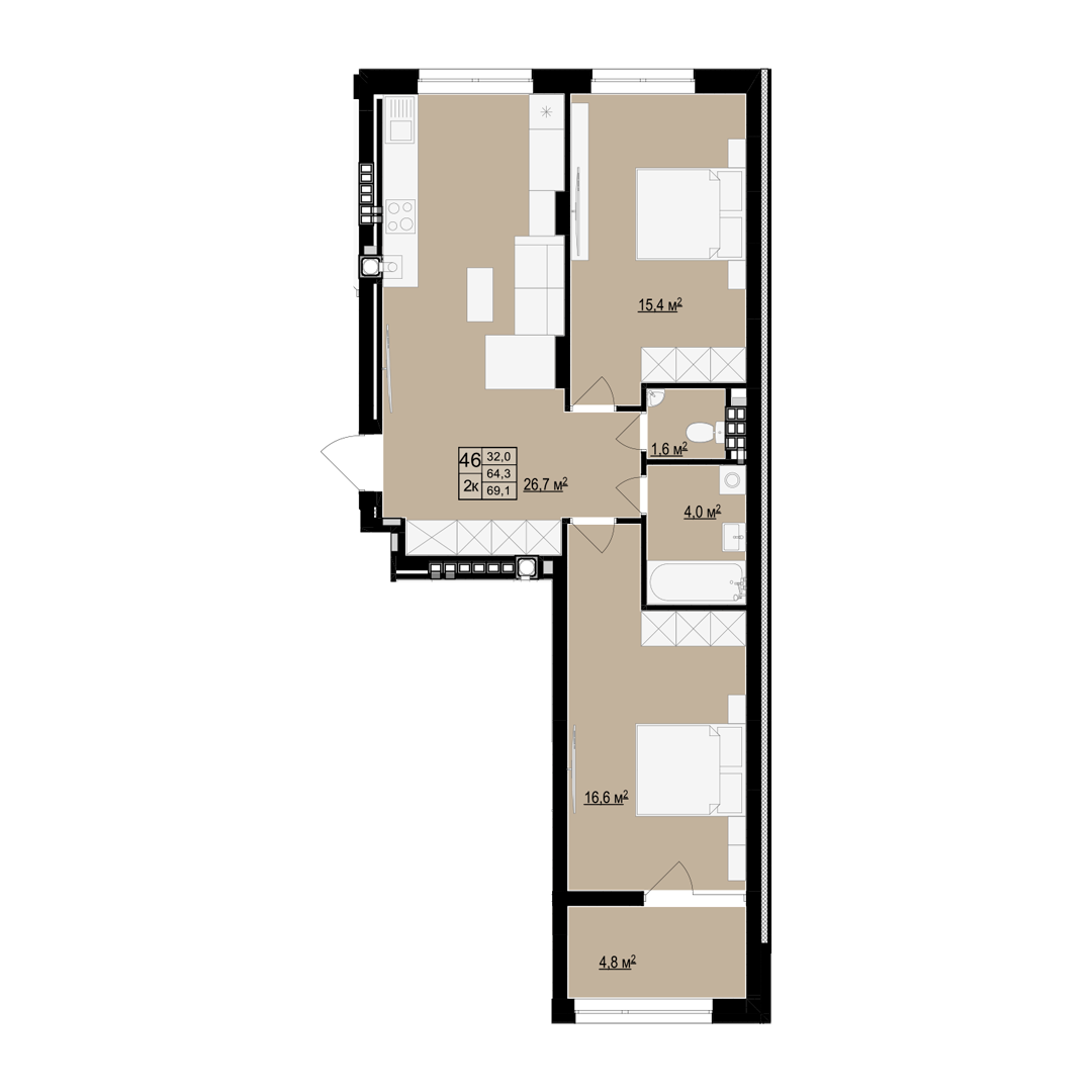 Загальна площа: 69.1 м2
