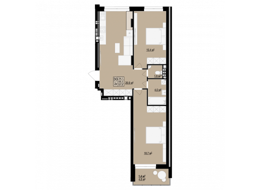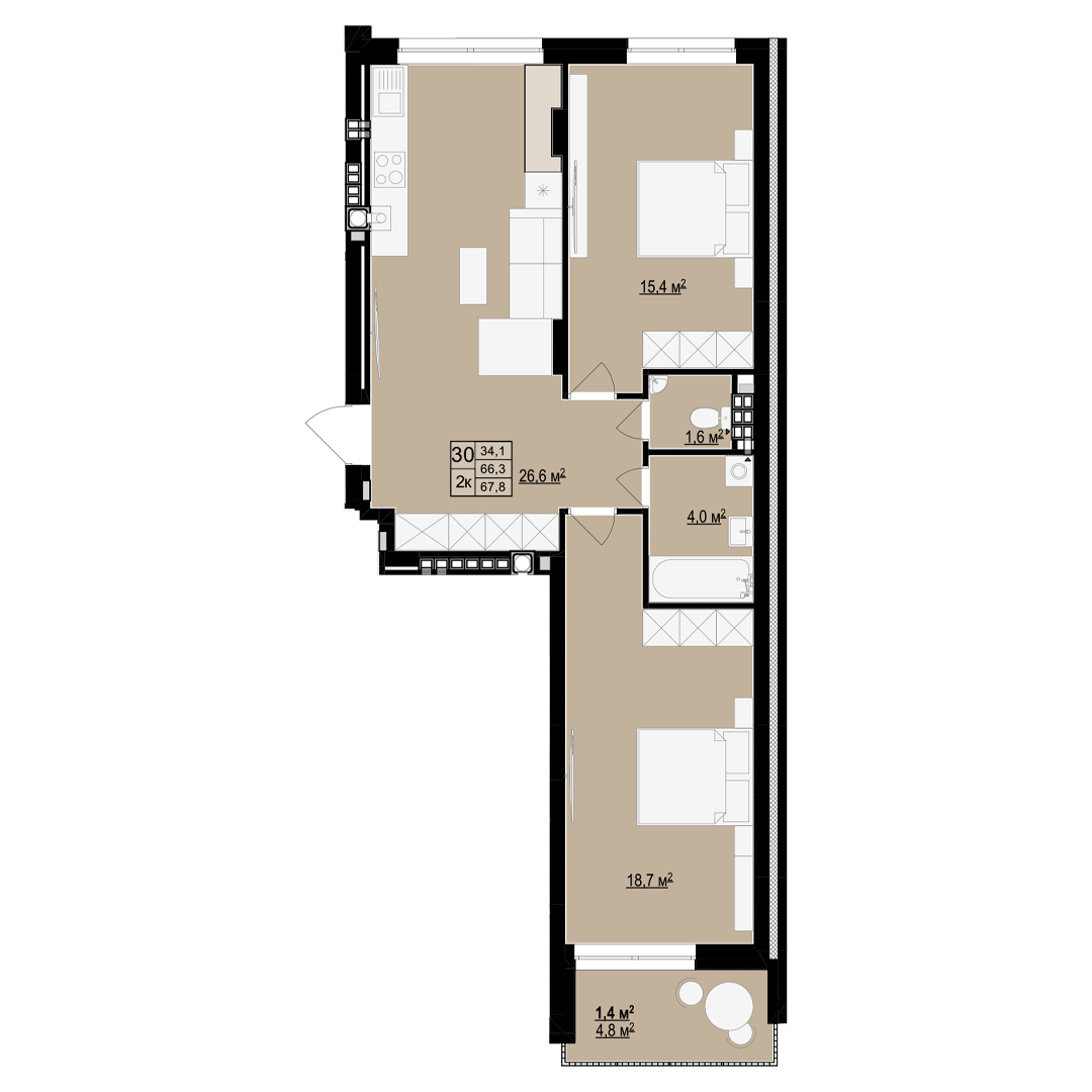 Планування 2-кімнатної квартири в будинку на вул. Бігова, 19 (3 секція) — №30