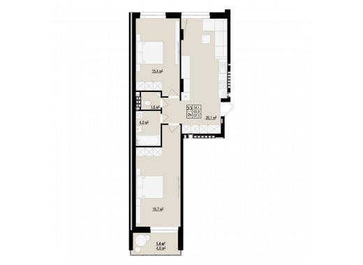 Житлова площа: 33.2 м2