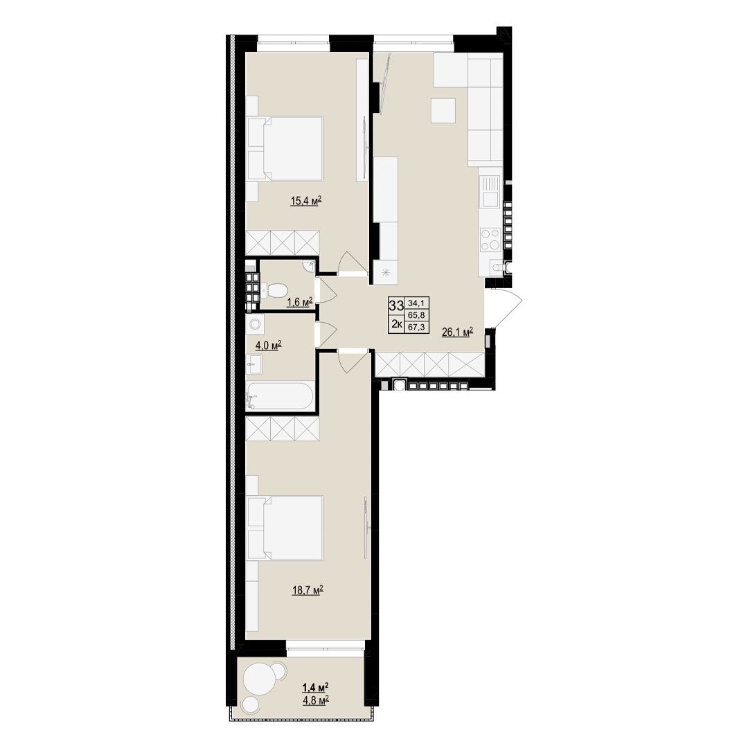 Загальна площа: 67.1 м2