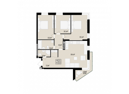 Загальна площа: 90.5 м2
