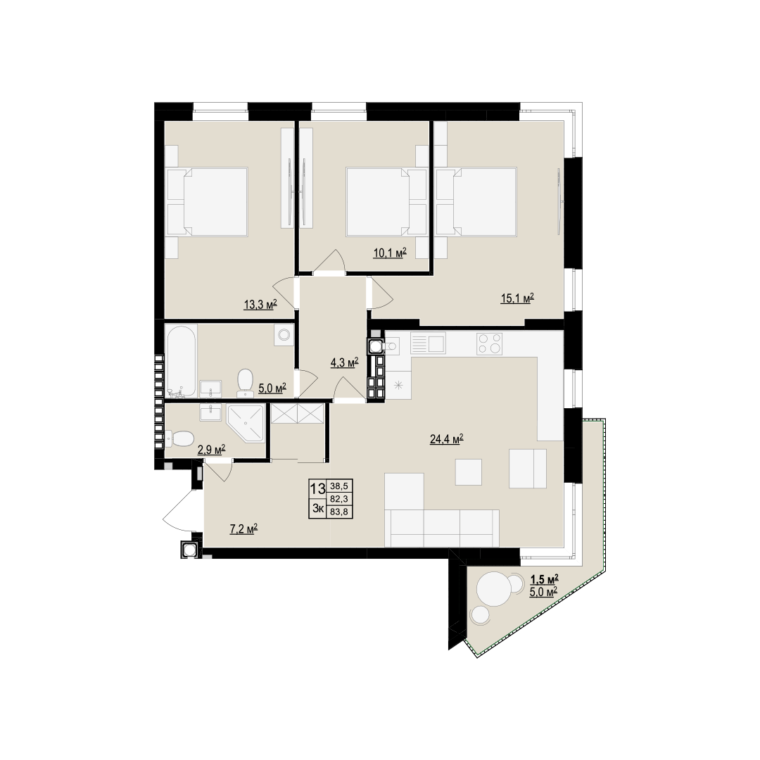 Загальна площа: 82.5 м2