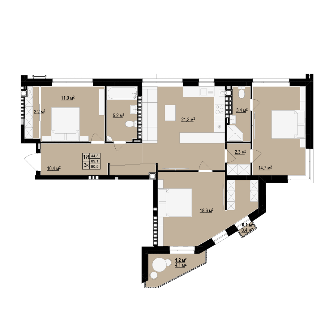 Планування 3-кімнатної квартири в будинку на вул. Бігова, 19 (4 секція) — №18