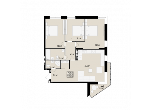 Загальна площа: 83.8 м2