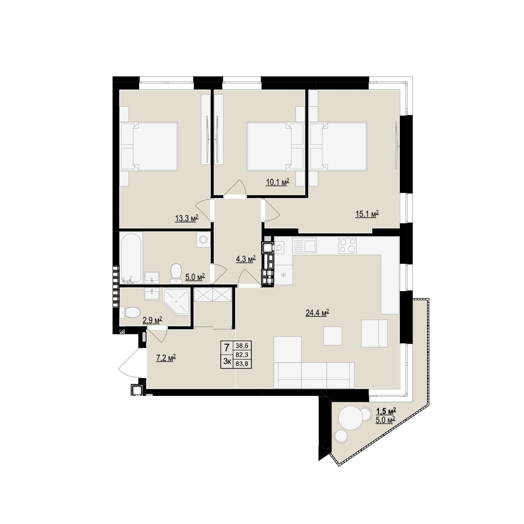Загальна площа: 82.5 м2