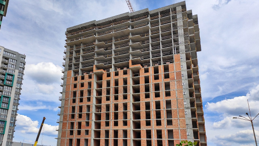 У п’ятій черзі (вул. Кришталева, 1-Б) триває цегляна кладка стін на 12 поверсі.