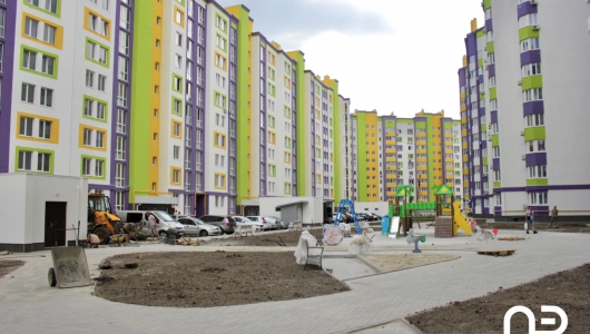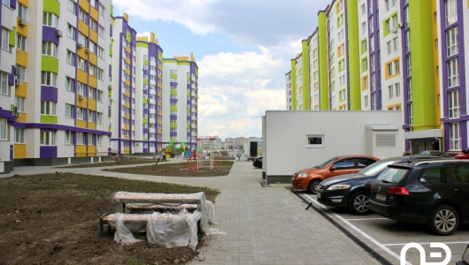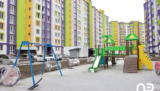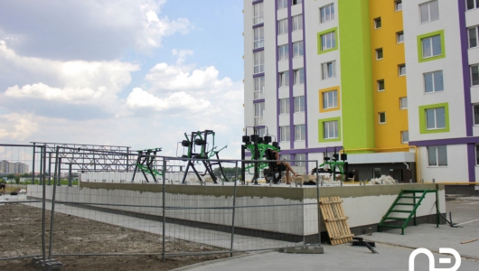 Облаштування прибудинкової території практично готово повністю. Будівельники виконали розмітку тротуарної фем–плитки біля під’їздів. Встановлено дитячий майданчик, і буквально на днях завершиться монтаж спортмайданчика.