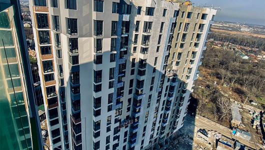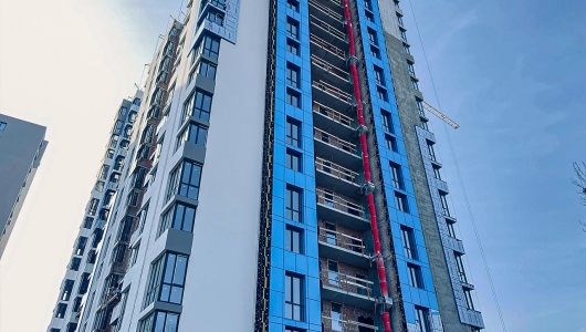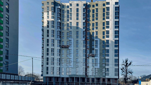 Наразі на об’єкті продовжуються фасадні роботи. Зокрема це: