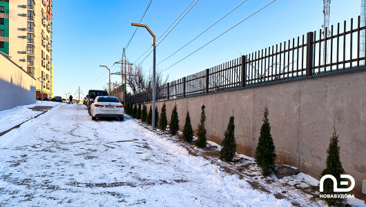 У другій черзі (вул. Оксамитова, 11-А) висаджено рослини, встановлено паркан, завершено монтаж системи пропуску на паркінг.