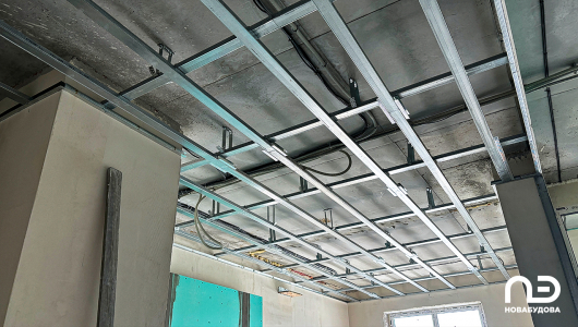 - облаштування підвісної стелі, монтаж дверей і вікон у холі.