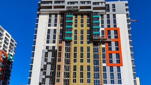 У п’ятій черзі (вул. Кришталева, 1-Б) завершено монолітні роботи на 17 поверсі й цегляну кладку стін на 9 поверсі.