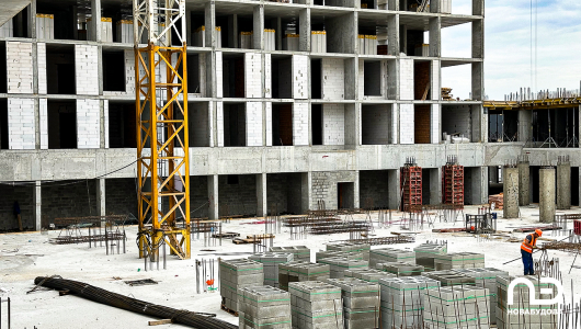 У першій секції виконуються монолітні роботи на 12 поверсі. Триває цегляна кладка на 8 поверсі. Повністю завершено прокладання сантехнічних стояків. Розпочато підготовку до монтажу вікон.