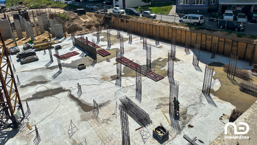 У підземному паркінгу триває облаштування моноліту між 3 і 5 секціями, підготовка до гідроізоляції між 1 і 2 секціями, підготовка до благоустрою між 1 і 2 секціями.