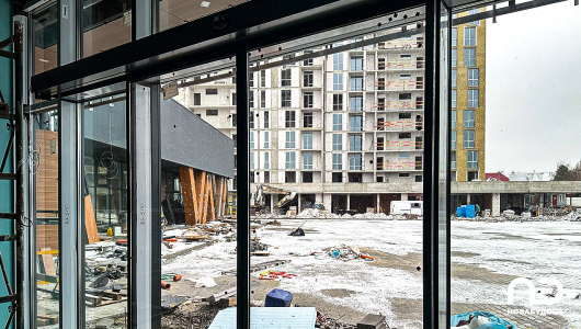 Будівництво власного торгового центру поруч із ЖК перебуває на стадії завершення. Наразі загальний показник виконаних робіт у ТЦ складає 95%.