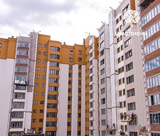 У перших двох зведених секціях утеплюється фасад, проводяться штукатурні та малярні роботи. Будинок засклено, а в квартирах вже встановлено вхідні двері. Для встановлення ми використали вікна з подвійним склопакетом надійної профільної системи КВЕ Optima.