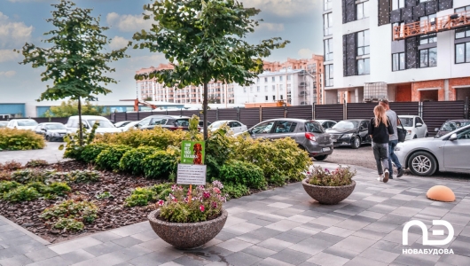 У третій черзі (вул. Кришталева, 1-А) триває благоустрій прибудинкової території (укладання тротуарної плитки і монтаж дитячого майданчика).