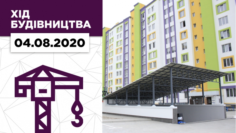 Облаштування прибудинкової території практично готово повністю. Будівельники встановили огорожу навколо всієї території комплексу. Встановлено також і спортмайданчик. Наразі ведуться роботи з монтажу огорожі навколо спортмайданчика, а також – укладання гумового покриття на дитячому й спортивному майданчиках.