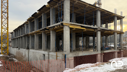 - монтаж опалубки під плиту перекриття над 2 поверхом 2-3 секцій (готово на 80%).