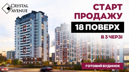 У продажу – квартири на 18 поверсі в ІІІ черзі ЖК «Crystal Avenue»