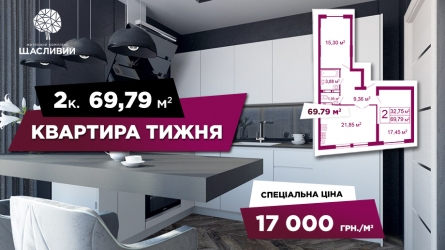 Компанія «НоваБудова» презентує нову вигідну пропозицію в розділі «Квартира тижня» – двокімнатну квартиру в готовому будинку ЖК «Щасл