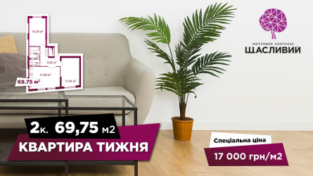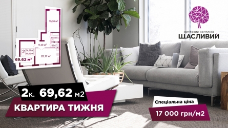 Квартира тижня: 2–кімнатна квартира (69,75 м2) за зниженою ціною 17 000 грн/м2