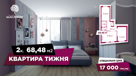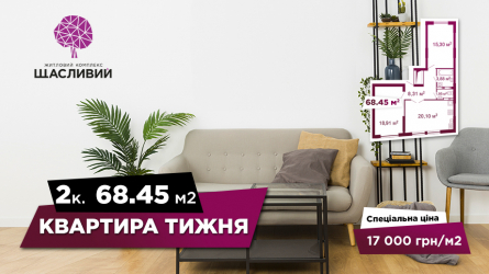 Квартира тижня: 2–кімнатна квартира (68,45 м2) за зниженою ціною 17 000 грн/м2